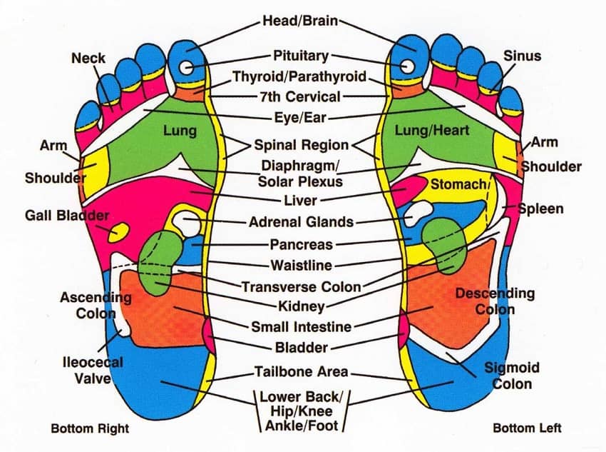 Reflexology was first introduced in the US in the early 1900s by William H. Fitzgerald, M.D., an ear, nose, and throat specialist. It was then modified by Eunice D. Ingham, a nurse and physiotherapist, who mapped the entire body into “reflexes” on the feet. Reflexologists use this reflexology chart or foot map to guide their work. The left foot corresponds to the organs found on the left side of the body and the right foot to the organs on the right side.